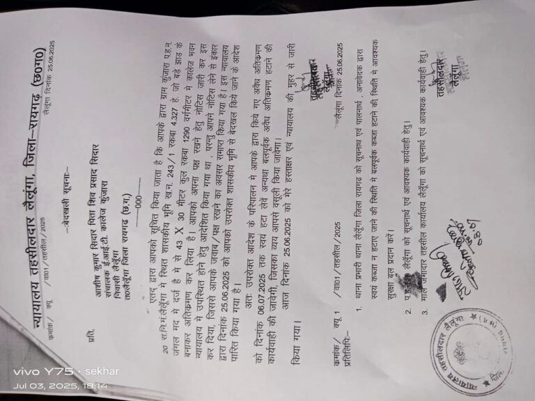 तहसीलदार लैलूंगा द्वारा की गई यह बेदखली कार्यवाही न केवल एक अवैध कब्जे को समाप्त करने की दिशा में बड़ा कदम है, बल्कि यह प्रशासन की दृढ़ इच्छाशक्ति का भी परिचायक है। अब देखना यह होगा कि संचालक स्वयं निर्माण हटाते हैं या प्रशासन को बलपूर्वक कार्यवाही करनी पड़ती है। फिलहाल क्षेत्र में यह मामला चर्चा का केंद्र बना हुआ है।