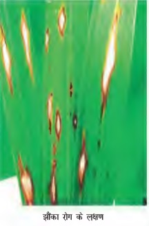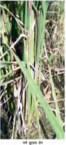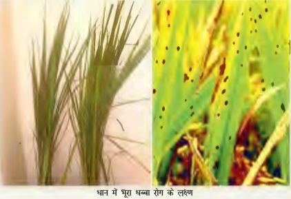 झौंका रोग (Magnaporthe grisea): पत्तियों और पुष्पगुच्छ पर भूरे-लाल धब्बे बनते हैं, जिससे पौधे जलकर दिखते हैं और उपज कम होती है। नियंत्रण के लिए बीज का चयन, रोगी अवशेषों का विनाश, बीज उपचार (थिरम या कार्बेंडाज़िम), और कार्बेंडाज़िम, ट्राइसाइक्लाज़ोल, हेक्साकोनाज़ोल, या प्रोपिकोनाज़ोल का छिड़काव किया जाता है।