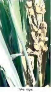 मिथ्या कंडुआ: दानों पर मखमली जैसे हरे रंग के समूह बनते हैं। नियंत्रण के लिए प्रोपिकोनाज़ोल या नाटिबों का छिड़काव किया जाता है।
