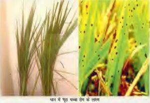 भूरा धब्बा रोग: पत्तियों और दानों पर कत्थई रंग के धब्बे बनते हैं। नियंत्रण के लिए मैंकोजेब का छिड़काव किया जाता है।