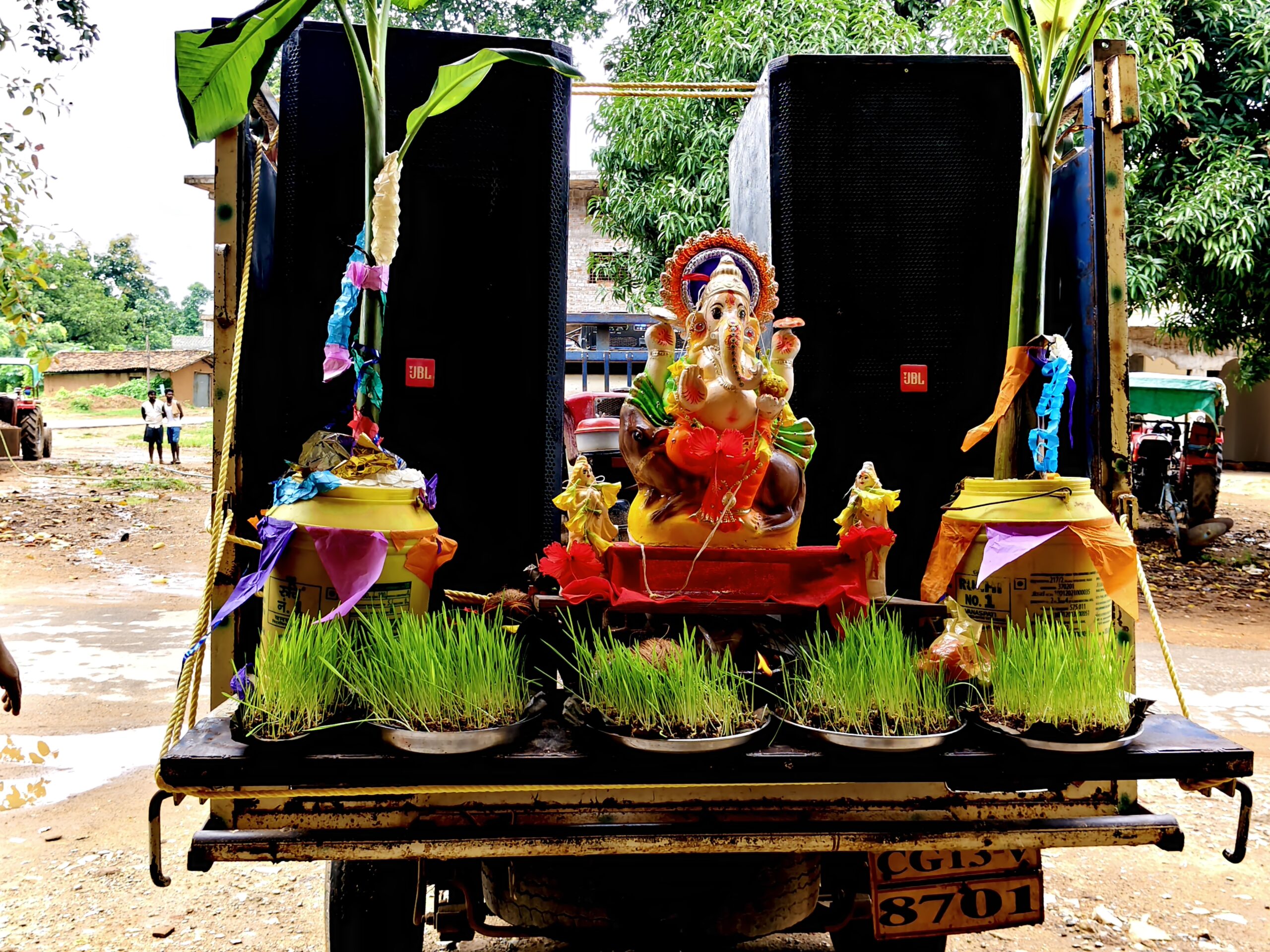 समिति के द्वारा रोजाना एकजुट होकर पूरी आस्था के साथ विसर्जन यात्रा में पूरे बजे गज और नाच के साथ गांव में भगवान गणेश की भजन और जय घोष से गूंज उठा।