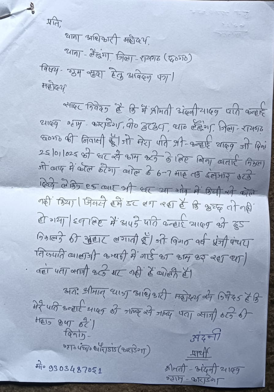 ग्रामीणों ने भी बताया कि परिवार ने काफ़ी दिनों तक उनके फोन का इंतजार किया, पर संपर्क न होने पर अंततः उनकी पत्नी अंदनी यादव ने थाना लैलूंगा में गुमशुदगी की रिपोर्ट दर्ज कराई। पुलिस ने मामले को गुम इंसान क्रमांक 60/25 में दर्ज किया है।