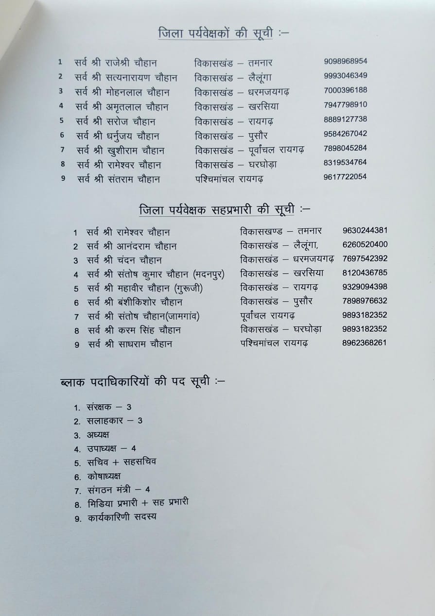 रायगढ़/चौहान समाज जिला रायगढ़ द्वारा संगठन को और अधिक सशक्त बनाने तथा समाज की गतिविधियों, कार्यक्रमों और सामाजिक सरोकारों को प्रभावी रूप से जन-जन तक पहुँचाने के उद्देश्य से एक महत्वपूर्ण निर्णय लिया गया है। जिला स्तरीय बैठक एवं आपसी सहमति के बाद पत्रकार संतोष कुमार चौहान को चौहान समाज, जिला रायगढ़ का मीडिया प्रभारी नियुक्त किया गया है। उनकी नियुक्ति को समाज के लिए एक सकारात्मक और दूरदर्शी कदम के रूप में देखा जा रहा है।