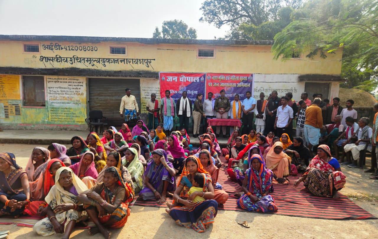 रायगढ़, 3 जनवरी । देशभर में सड़क सुरक्षा माह मनाया जा रहा है, वहीं जिले सड़क सुरक्षा माह के साथ 11 दिवसीय महिला सुरक्षा जन-जागरूकता अभियान भी संचालित है। पुलिस अधीक्षक श्री दिव्यांग पटेल के दिशा-निर्देशन में जागरूकता अभियान के तहत आज थाना लैलूंगा के ग्राम नारायणपुर में पुलिस जन चौपाल का आयोजन किया गया। यह कार्यक्रम थाना प्रभारी लैलूंगा उपनिरीक्षक श्री गिरधारी साव के नेतृत्व में आयोजित हुआ।