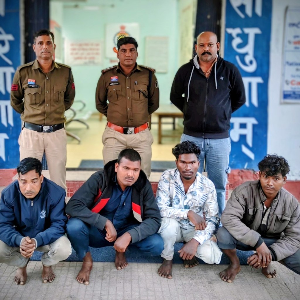 गिरफ्तार आरोपी (1) रामप्रसाद सारथी पिता श्यामलाल सारथी उम्र 22 वर्ष, निवासी ग्राम तरेकेला थाना छाल जिला रायगढ़(2) मिथलेश सारथी पिता मानसिंह सारथी उम्र 19 वर्ष, निवासी फरकानारा चौकी जोबी थाना खरसिया जिला रायगढ़(3) योगेश कुमार धनवार पिता रामेश्वर धनवार उम्र 24 वर्ष, निवासी ग्राम खर्रा थाना छाल जिला रायगढ़(4) नरेश कुमार पटैल पिता शिवदयाल पटैल उम्र 33 वर्ष, निवासी ग्राम खर्रा कार्यवाही में महत्वपूर्ण भूमिका थाना प्रभारी कुमार गौरव साहू, प्रधान आरक्षक अरविंद पटनायक, आरक्षक हरिश पटेल, उद्यो पटेल तथा स्थानीय युवक कालिया गुप्ता की रही।