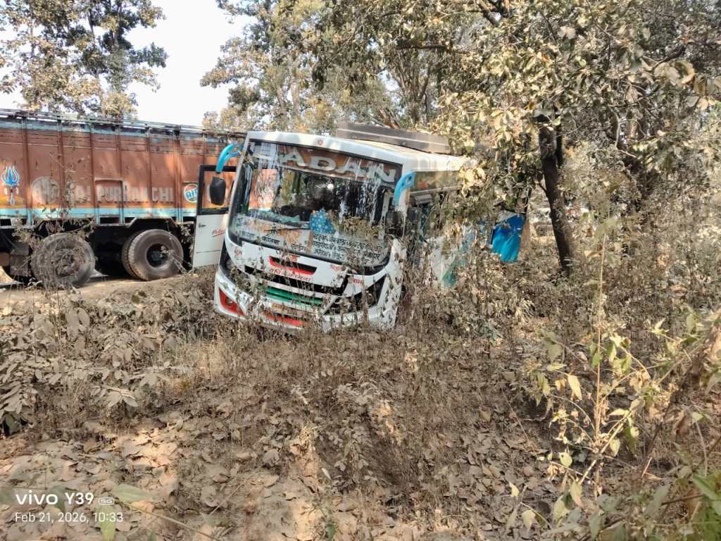 घरघोड़ा/ घरघोड़ा थाना क्षेत्र के कोटरीमाल के पास शनिवार सुबह एक बड़ा सड़क हादसा टल गया, जब रनपुर से रायगढ़ जा रही सवारी से भरी बदन बस अचानक सड़क से नीचे उतर गई। घटना के बाद बस में सवार यात्रियों के बीच कुछ देर के लिए चीख-पुकार और अफरा-तफरी का माहौल बन गया।