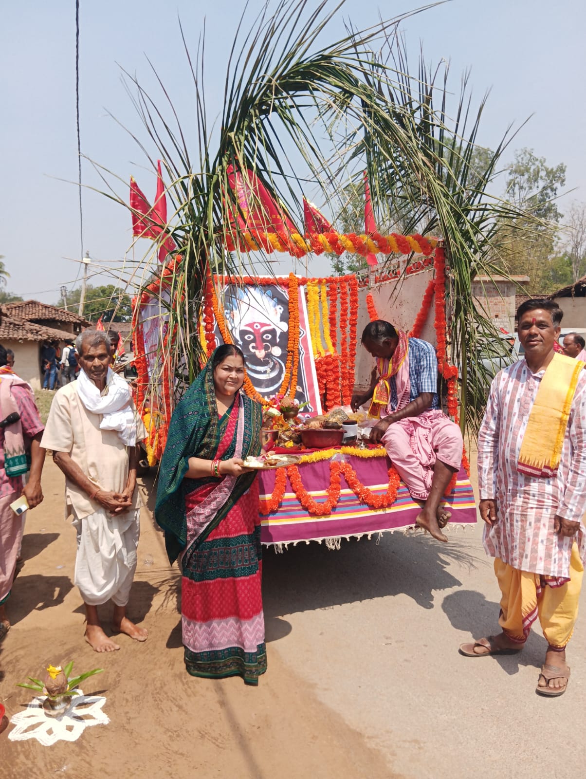 लैलूंगा/ कोलता समाज के ईष्ट देवी माता रामचंडी दिवस के उपलक्ष्य में कोलता समाज आंचलिक सभा लैलूंगा के सामूहिक प्रयास एवं सहयोग से भव्य शोभा यात्रा ग्राम बहामा से सामाजिक बंधुओं की भारी संख्या में हजारों भक्त – श्रद्धालुओं की उपस्थिति में विधिवत पूजा, अर्चना के पश्चात शोभा यात्रा की शुभारंभ की गई। बहामा ग्राम की पावन धरा पर माता राम चंडी की उद्घोष एवं जय ध्वनि के साथ पूरे माहौल को खुशनुमा एवं भक्तिमय की स्थिति बनी । भक्ति के रंग में डूबे, पूर्ण श्रद्धा के साथ शोभा यात्रा निकाली गई।